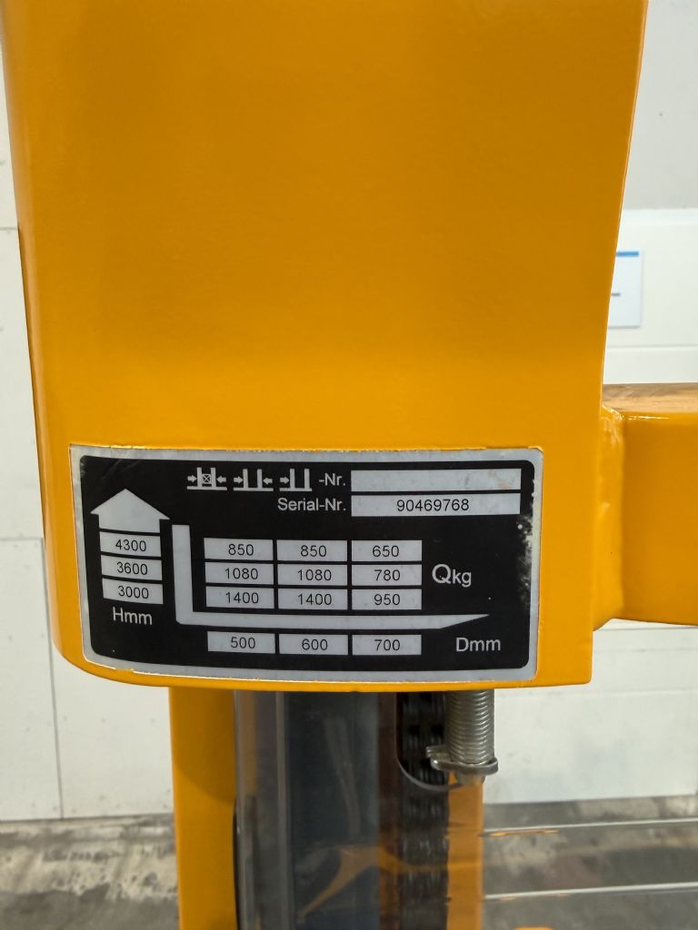 Mast: Triplex Lift height: 4300 mm Closed height: 1900 mm Free lift: 1300 mm Fork length: 1190 mm |